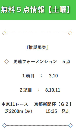 そこで管理人の田中が土日、抜き打ち自腹検証した結果を実際に提供された買い目と共にまとめましたので今週末の競馬にお役立て下さい。