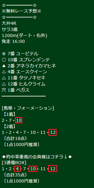 無料情報馬単「4万300円」