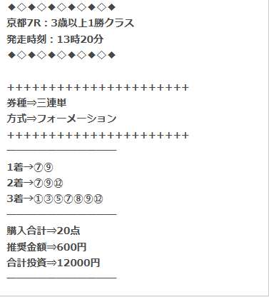 26日(日)菊花賞開催日に京都7R3歳以上1勝クラス(牝)レースを予想して⑦-⑫-⑧(23,730円)払い戻しを攻略して14万2380円を獲得!