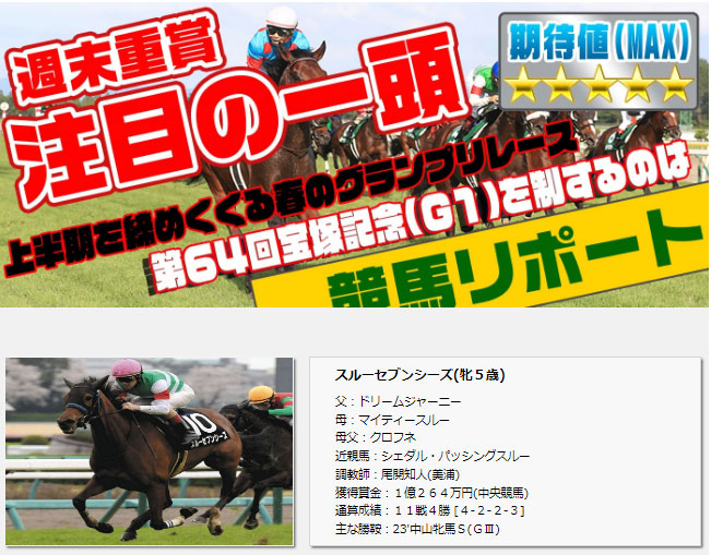 「注目の一頭」で推奨したスルーセブンシーズが見事10番人気の評価を覆し2着に好走し、期待に応えてくれました!
