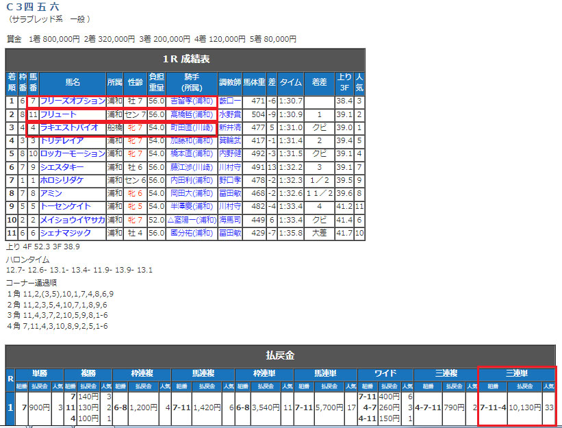 浦和競馬場の予想でした。