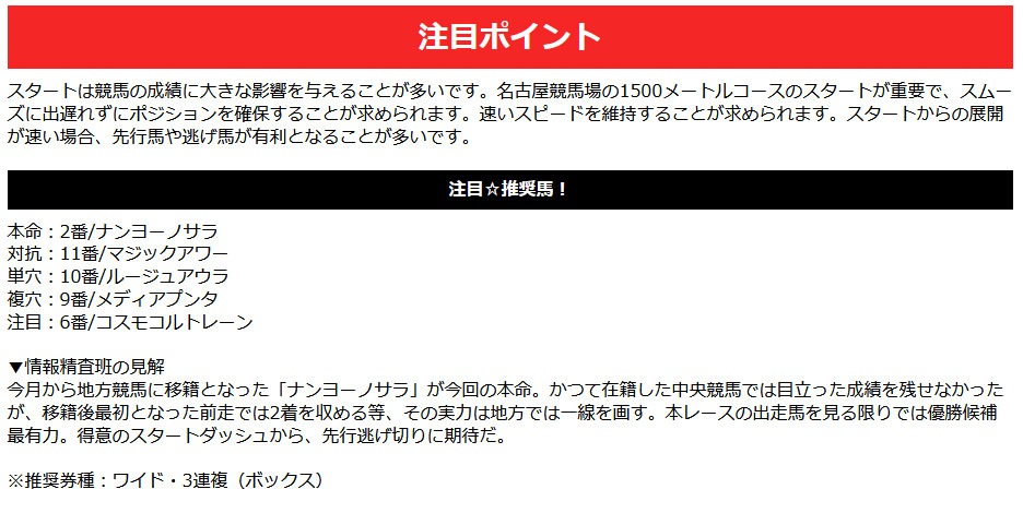 会場の注目ポイントと予想の見解が載せられており、丁寧な情報だという印象です。
