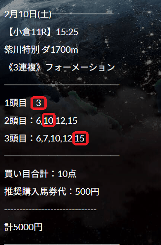 10日(土)小倉11Rで無料情報7万750円獲得!