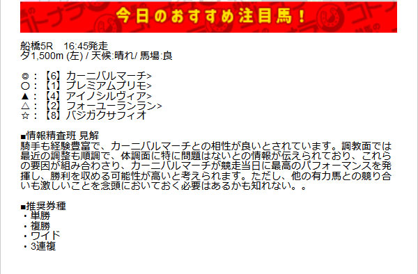 地方競馬の予想も出してくれるようで中でも南関競馬に特化している予想を提供してくれるそうです。
