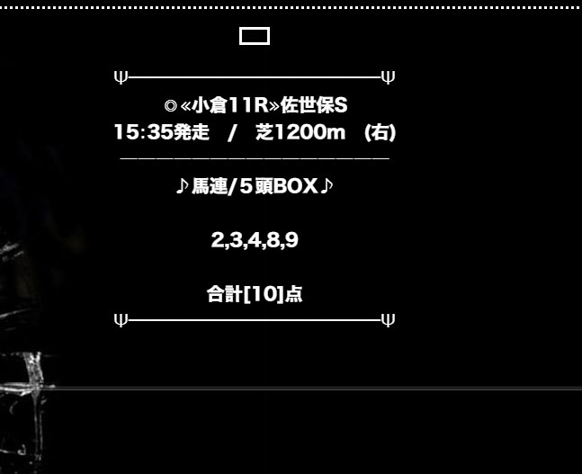 小倉競馬場のメインレースの佐世保ステークスの予想でした。