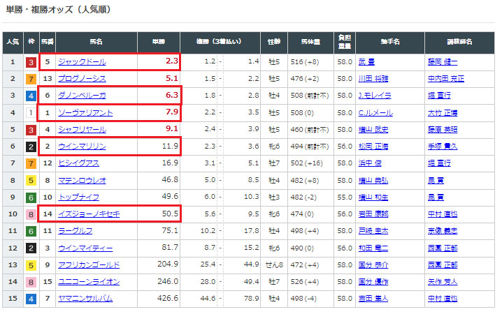 予想は今回も馬連の5頭ボックスで点数は10点になります。