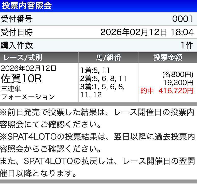 雪の関係で開催中止、開催日変更で予想大変だったと思うけど 小倉の高配当爆誕レース的中に満足してます。 3Rねん単1905.4倍なんて競馬玄人、競馬歴10年以上でも当てられないっす。 76万2160円ありがとうございました。 今年は金杯からなかなか勝てずようやく高配当が掴めました、最近は個人の予想には限界を感じております。。。