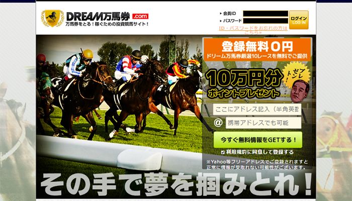 【閉鎖】ドリーム万馬券.com万馬券をとる!稼ぐための投資競馬サイト!  |