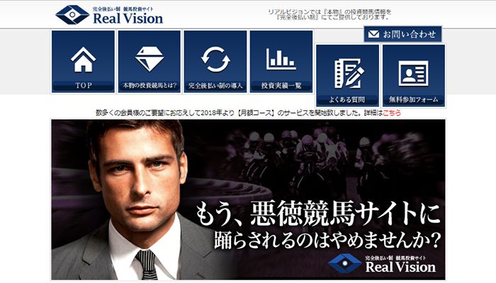 【閉鎖】リアルビジョン(RealVision)完全後払い制 競馬投資サイト  |