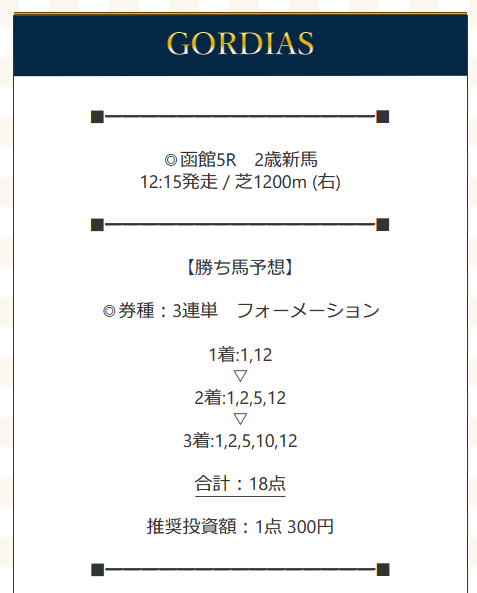 結構絞られてる予想だったから乗りやすかったです。推奨されてる投資額もそんなに大金じゃないし、とっかかりやすくて良いサイトだと思います。