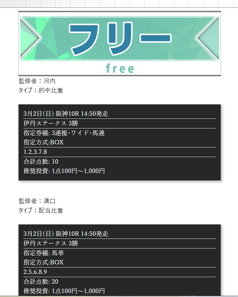 ※登録がない予想サイトなどがあればお問い合わせまでご連絡をお願いします。※