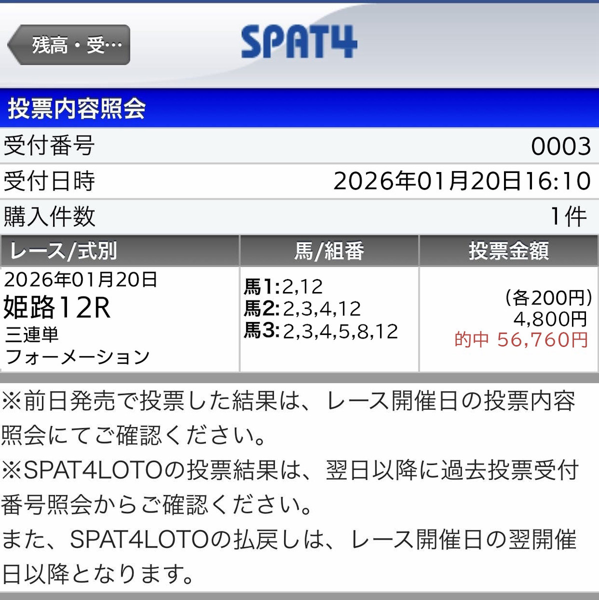 3連単連続万馬券的中でしたね~ お小遣い稼げました、いうても100円でかけていたから数万+ですけどね