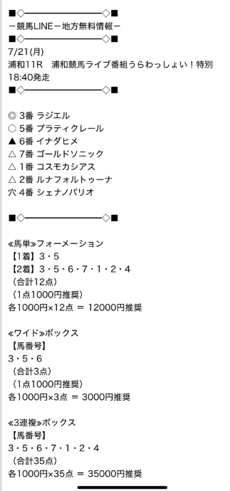 8/20(水)浦和11レースの無料情報で万馬券とれました!
